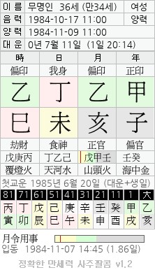 아마도 대운이 좋은 운으로 바뀌는 31살 이후로 결혼한 것으로 보이고,